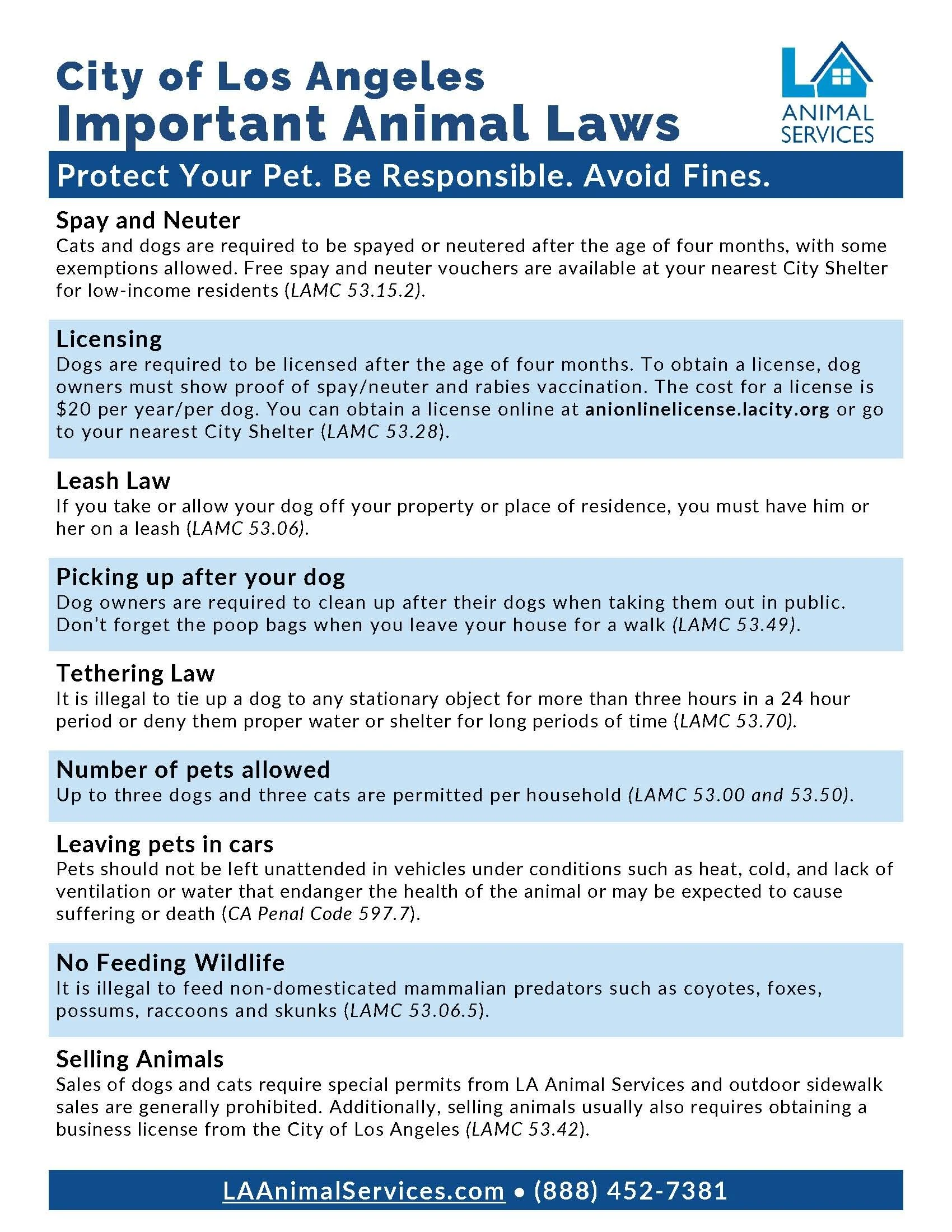 City Of Los Angeles Important Animal Laws Bel Air Association